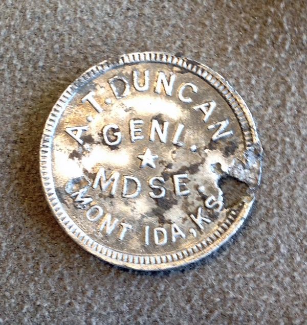 A token from A.T. Duncan General Merchandise excavated in Mont Ida.
